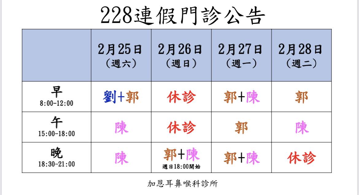 228連假門診表